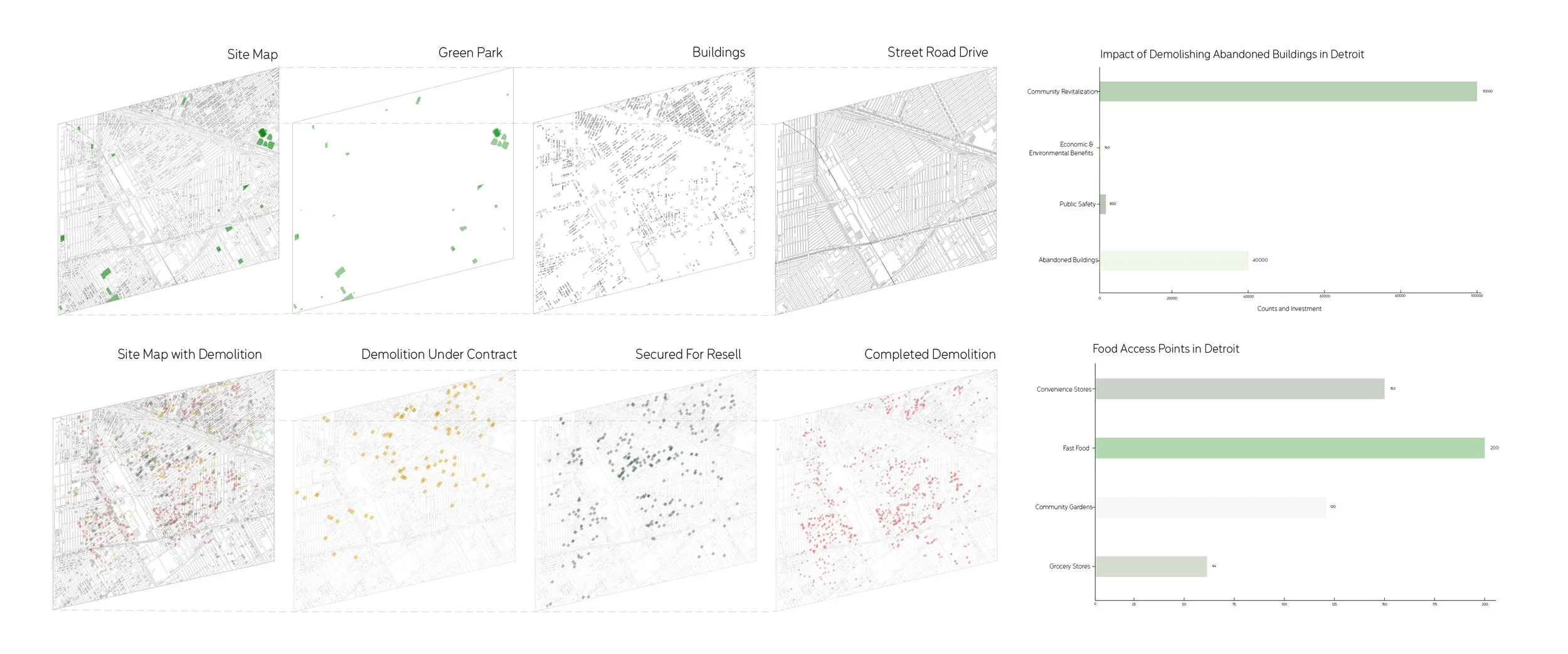 Mapping demolition and vacancy in Detroit to identify a site where housing loss and food insecurity intersect, informing strategies to improve food access.